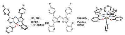 Aza-dipyrromethenes (aza-DIPYs) are a class of chemical dyes that display strong absorption and emission profiles in the visible and near-IR region of the electromagnetic spectrum.